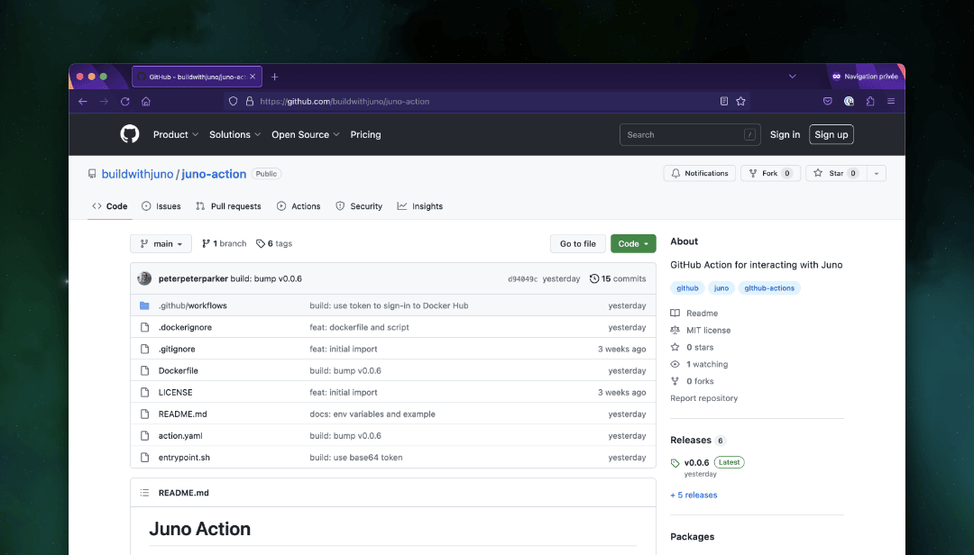 With the GitHub Action configured, you are now ready to automate the deployment of your dapp to Juno. Simply push a release, and the action will trigger, deploying your application seamlessly.